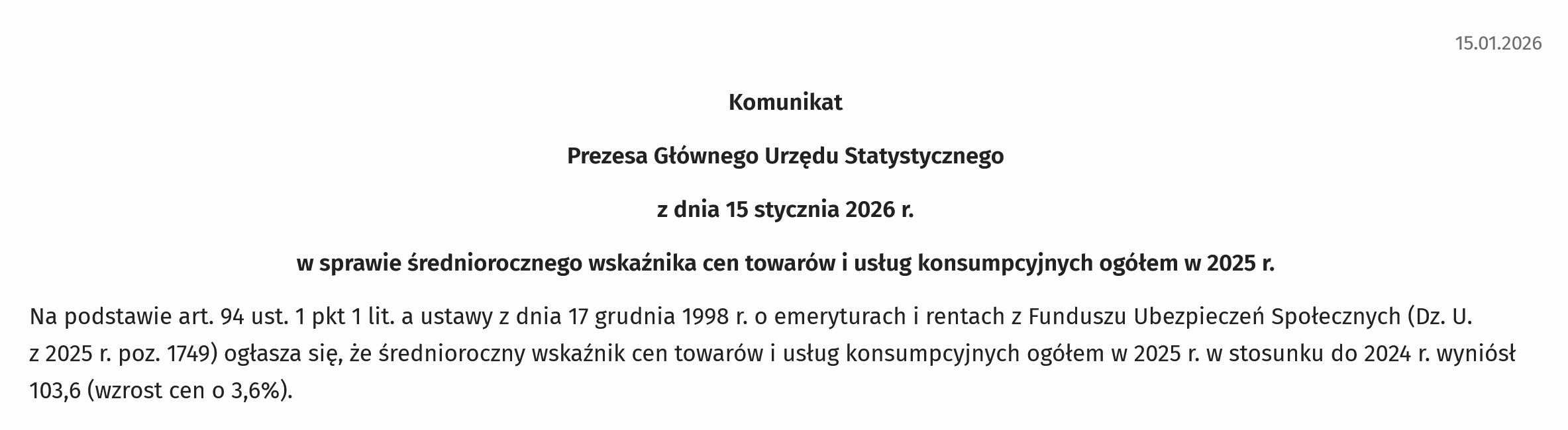 Komunikat Prezesa G.U.S. za rok 2025r.